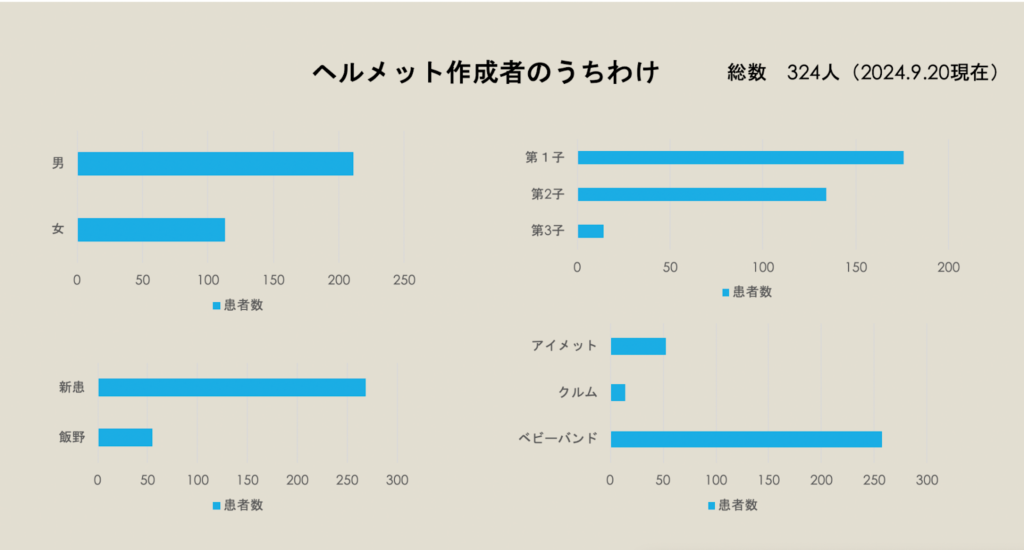 なお、お子さんがヘルメット治療の適応があると診断された場合、当院で頭蓋形状矯正ヘルメット(ベビーバンド)を作成することができます。