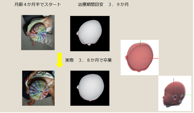 - 頭蓋骨早期癒合が無いことを確認後ヘルメットを作成