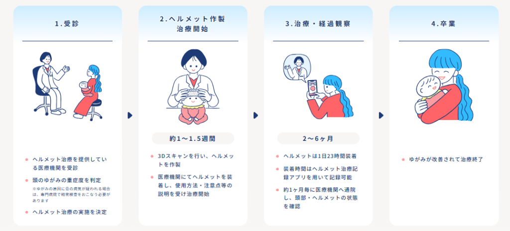 ・約1ヶ月毎に通院し、頭部・ヘルメットの状態を確認します。